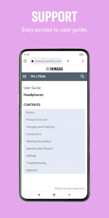 -Bluetooth connection is required from your smart device with the app installed and the compatible Yamaha headphones/earphones.