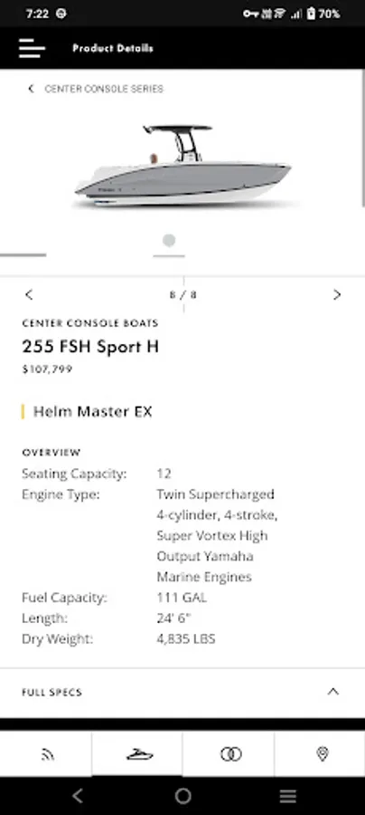 The Yamaha Boats mobile app gives you the inside track to everything there is to know about Yamaha’s 2024 Boat line up including Yamaha’s All-New 255 FSH Sport H Center Console Boat with Helm Master EX that allows for smooth, precise low-speed maneuvering. Also new for 2024, is the 1.9L High Output Yamaha Marine Engine replacing the Yamaha 1.8L High Output motor. This more powerful engine provides quicker and smoother acceleration and a higher top speed.