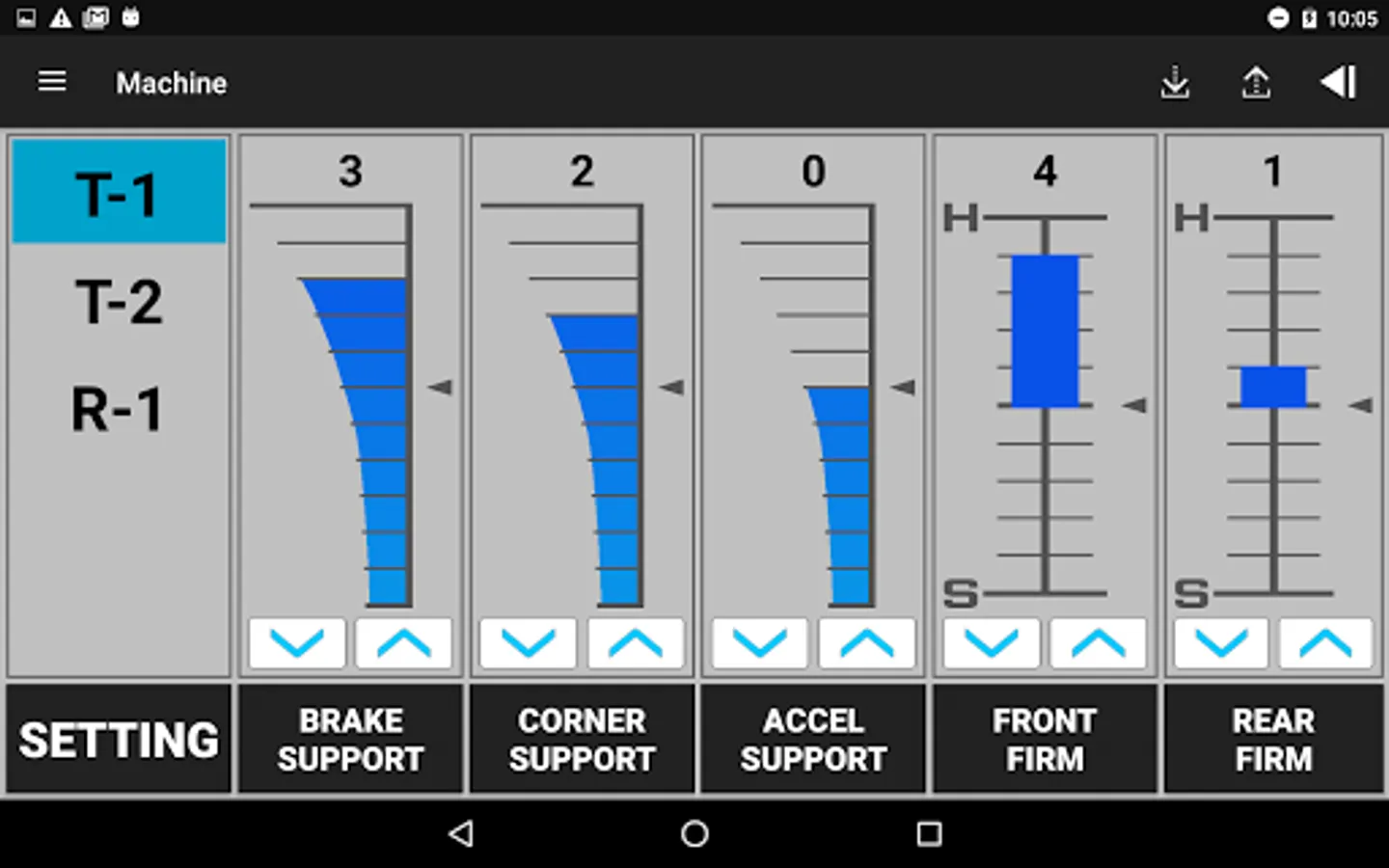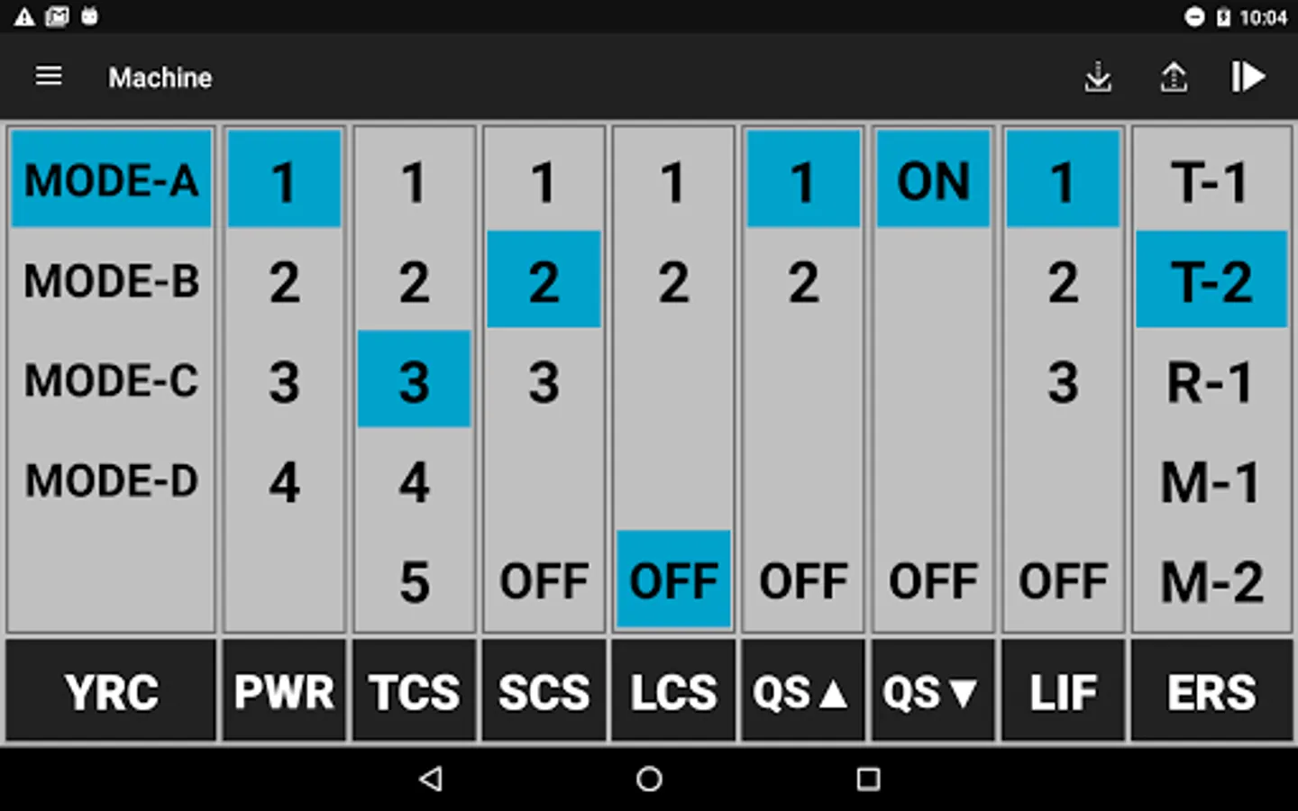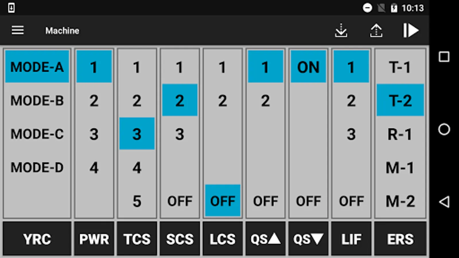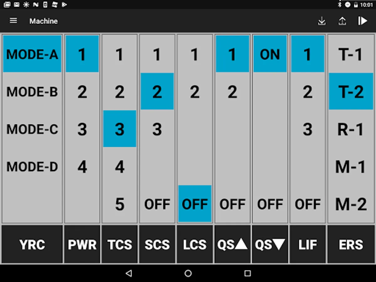 YRC Setting is an application that can operate the 2015-2020 model YAMAHA YZF-R1/R1M equipped with YRC (*1) through a tablet or smartphone. It has the same operational feel as the vehicle's YRC, and allows you to determine settings without worrying about time or location. Download vehicle-setting conditions, and then upload the settings you have made on your tablet or smartphone back to the vehicle. Settings can be recorded and managed in a variety of ways. Exchanging data with friends means non-stop fun. Now, put this in your pocket and get out on the circuit!