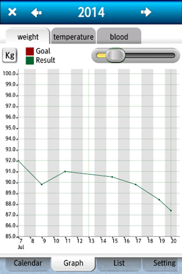 ・It is possible to check the difference between your present weight and goal one and the change of your intermittent temperatures by graph.
