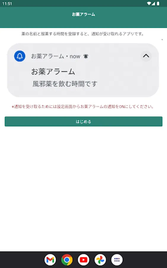 If you register the medicine you usually take and the time you want to take it, it is an application that will notify you by push notification every day at that time.