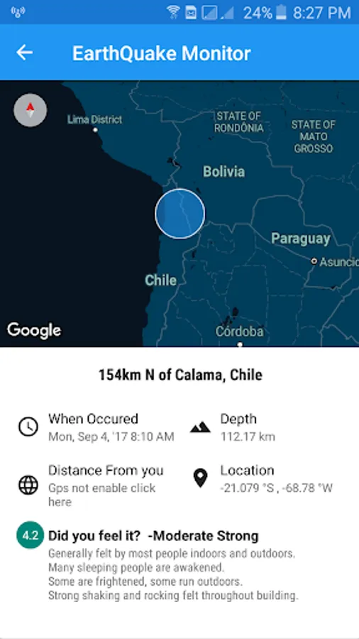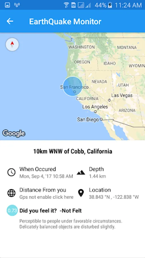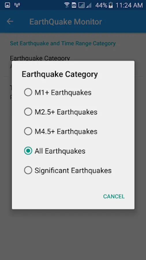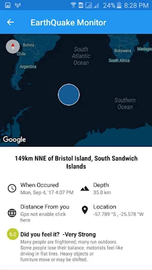 You can monitor earthquake base on magnitude and time. It gives you a distance between you and earthquake you monitor
