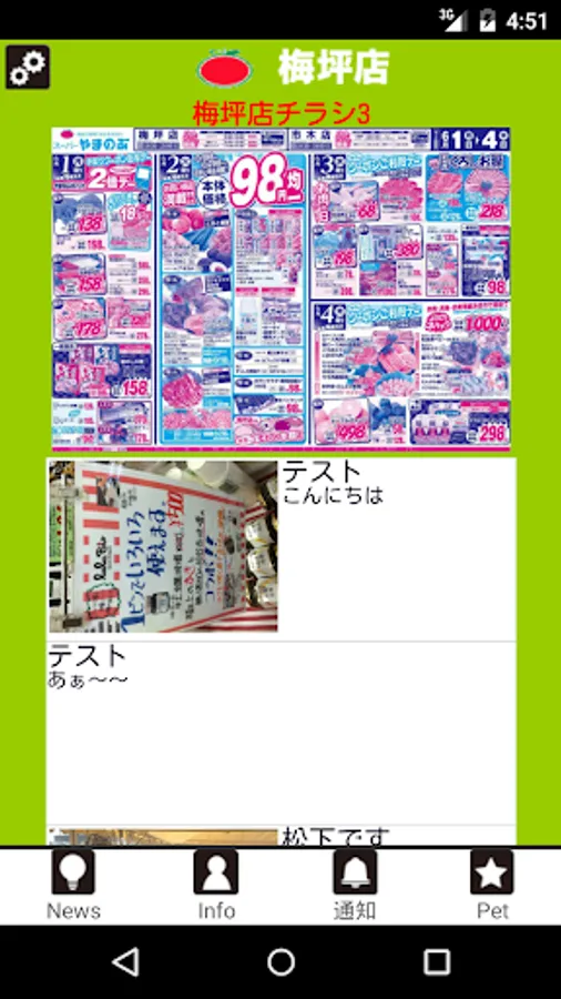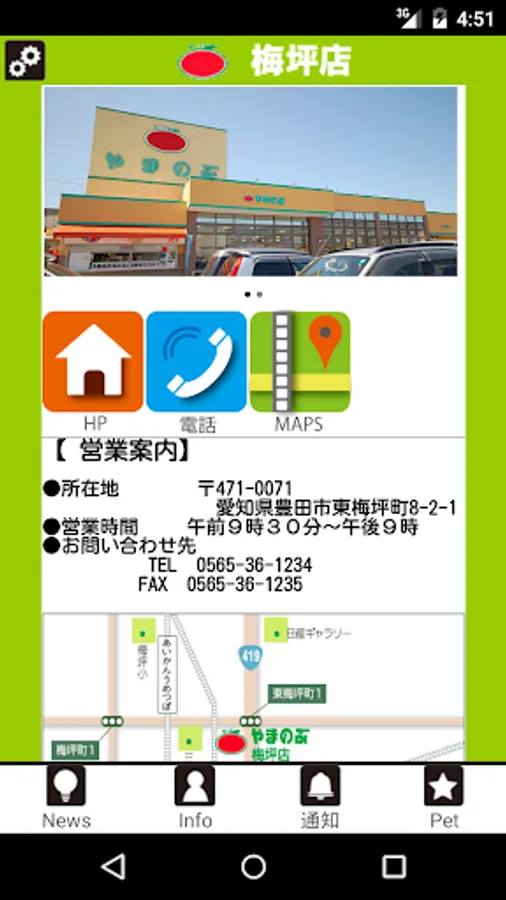 It is an application to deliver quickly the latest information of Yama Nobu Umetsubo shop.