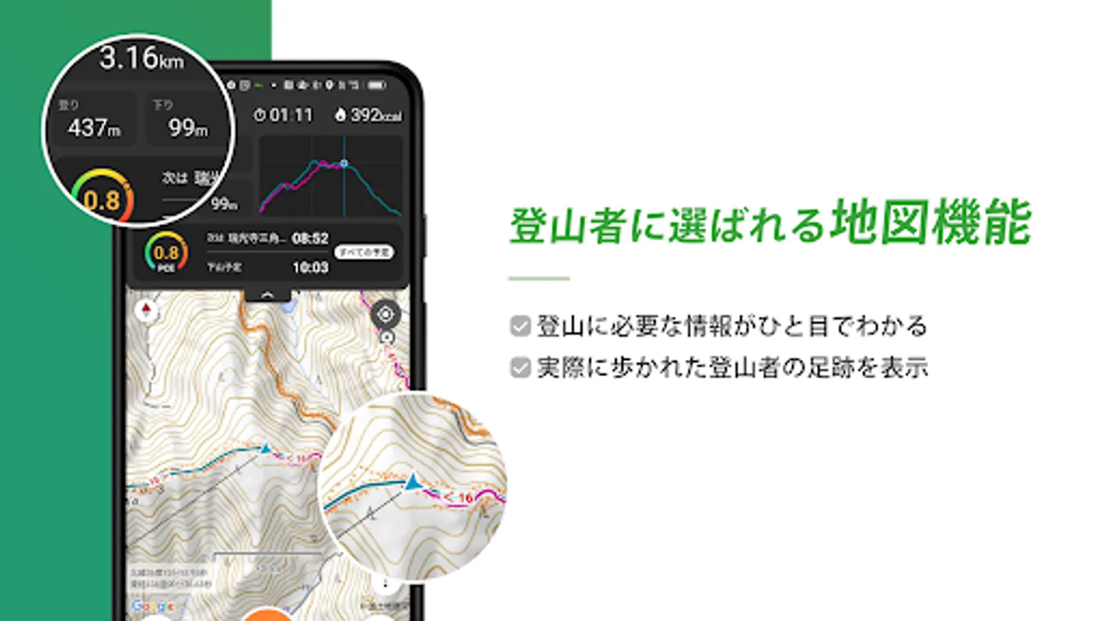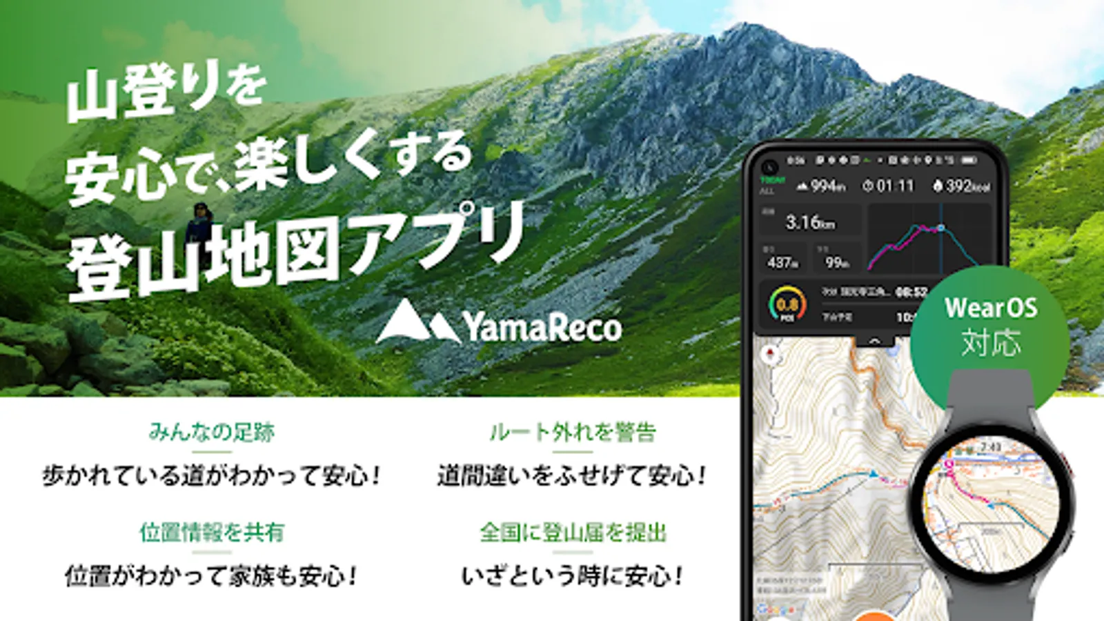 If you use a smartwatch equipped with Wear OS by Google, you can easily check the map at hand. You will also be able to receive a warning when you deviate from the planned route, allowing you to enjoy mountain climbing even more safely!
