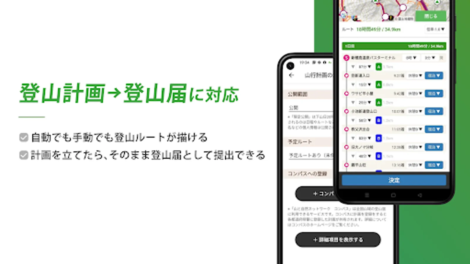 It is linked with the "Compass" system operated by the Japan Mountain Guide Association, so you can create a mountain climbing plan with the app and submit it as a mountain climbing notification to Compass.