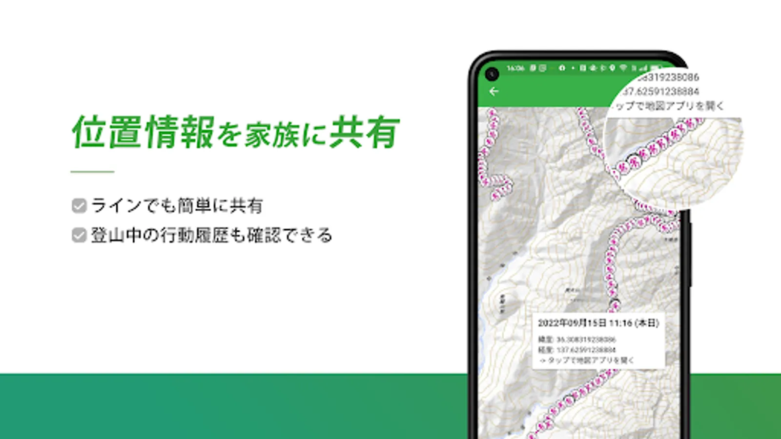 In addition, by linking with the "Ima Coco" app and website, you can rest assured that you can safely and in real time communicate your current location to your family and friends while climbing using the "Yamareco" app!