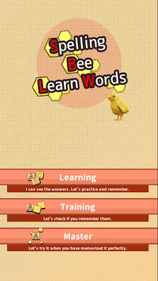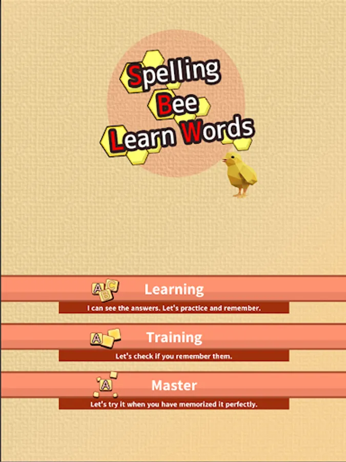 In "Master" mode, you can only answer the questions if you have memorized the words well by choosing one letter at a time, and you can enjoy learning words by gradually increasing the difficulty level and playing repeatedly.