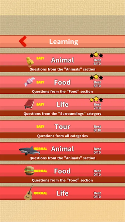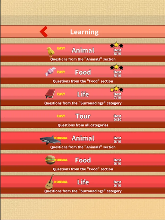 Once you have learned the words, you can test your skills in the "normal" mode, where you can't see the answers, but you can answer the questions correctly! You can feel your mastery!