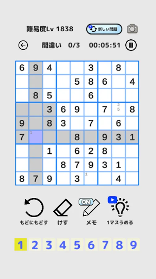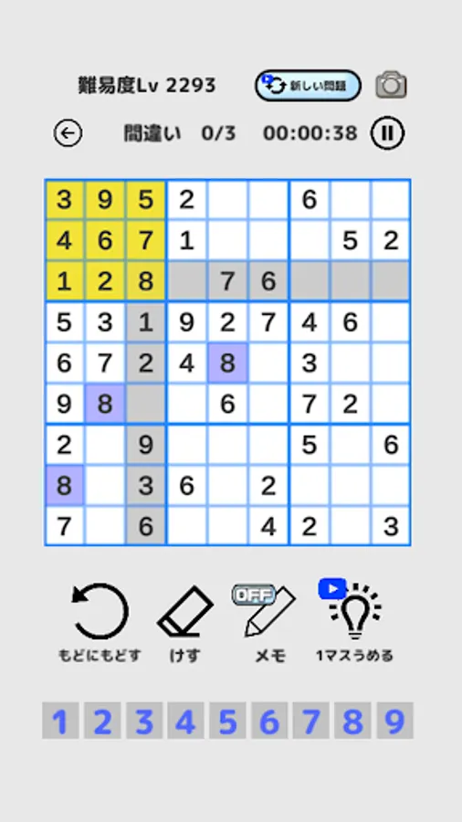 "SUDOKU Nunber Puzzle Games"allows you to encounter a wide variety of problems, so it's fun to collect your solved puzzles.