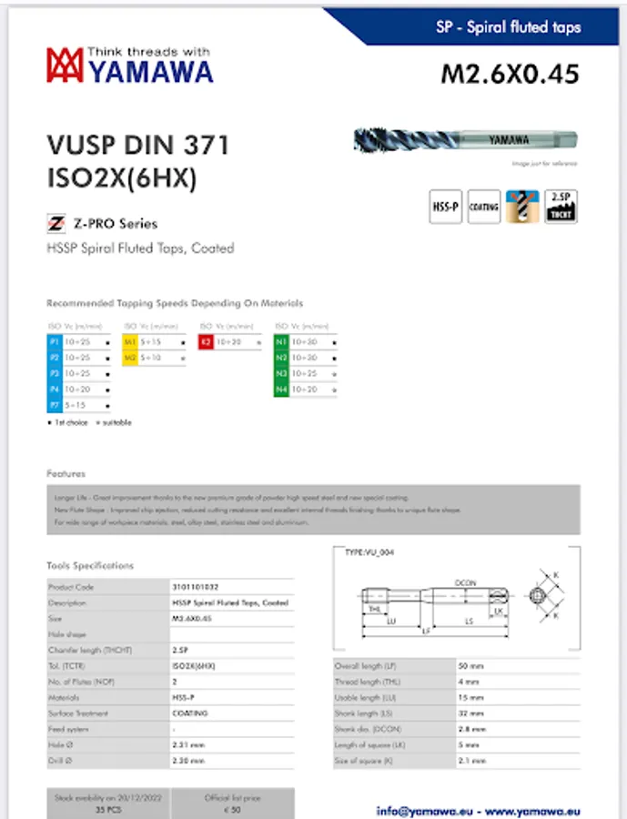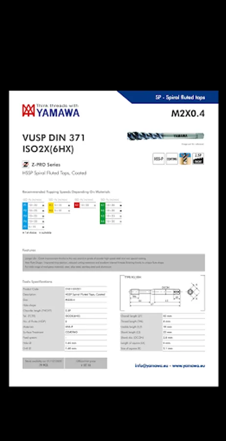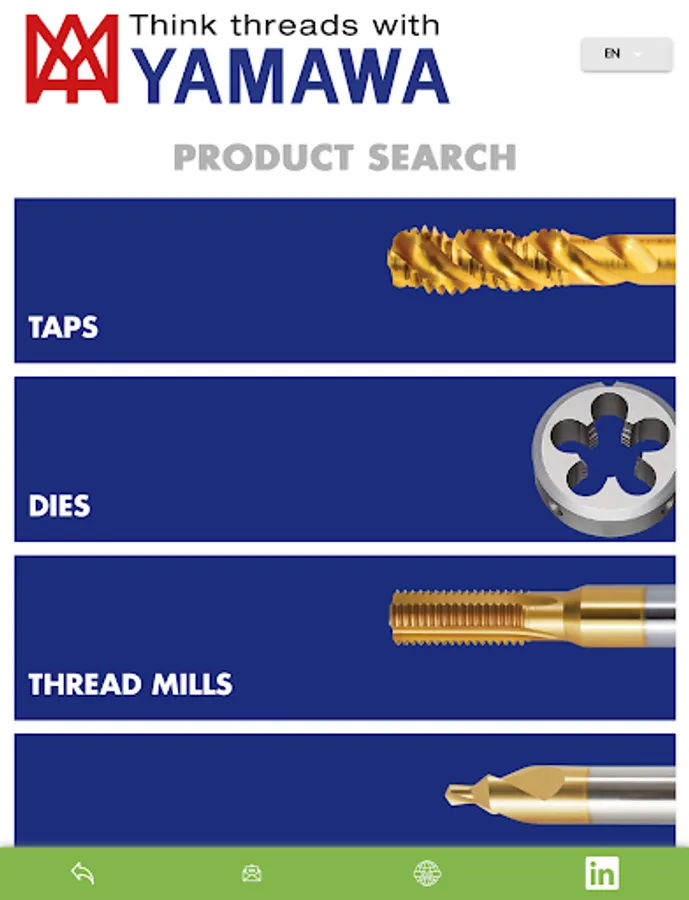 Yamawa Europe helps you to navigate through all Yamawa's threading solutions (taps, dies, thread mills, centering tools) with a new, free, powerful, multi-language tool selector.