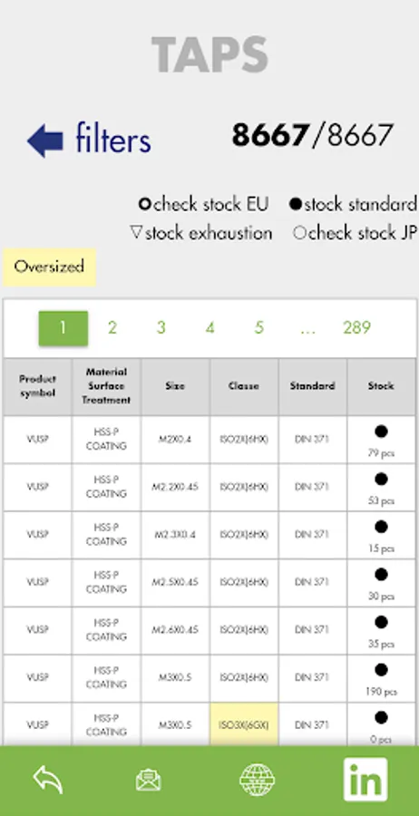 The stock range is constantly updated; the data are available online, so database download on the device is not necessary.