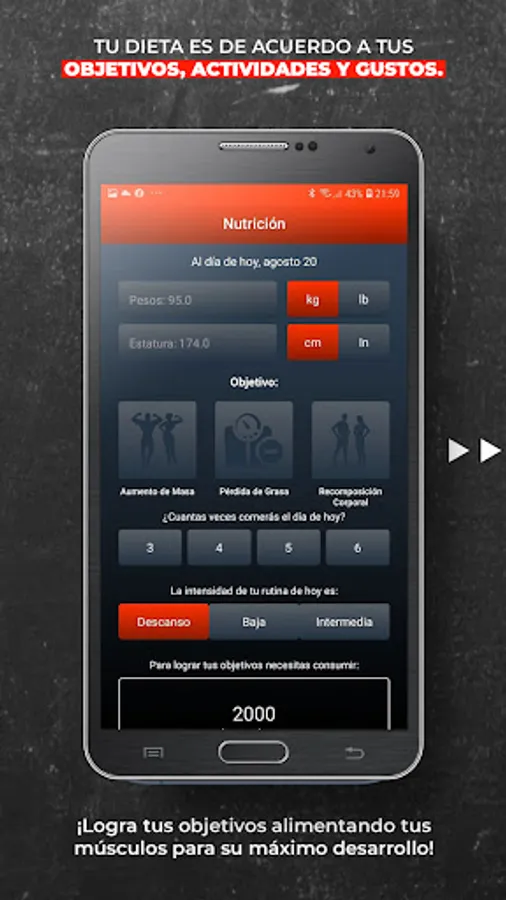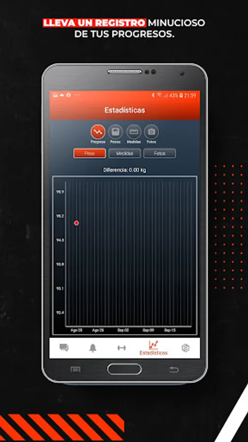 - Monitoring progress with images, weight and measurements, directly with me and with my work team via internal messaging of the web application.
