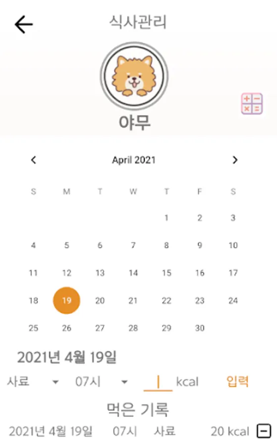 It also includes a calculator that allows you to keep track of the calories you eat every day and uses the grams and calories written on the feed to calculate the actual calories you eat.
