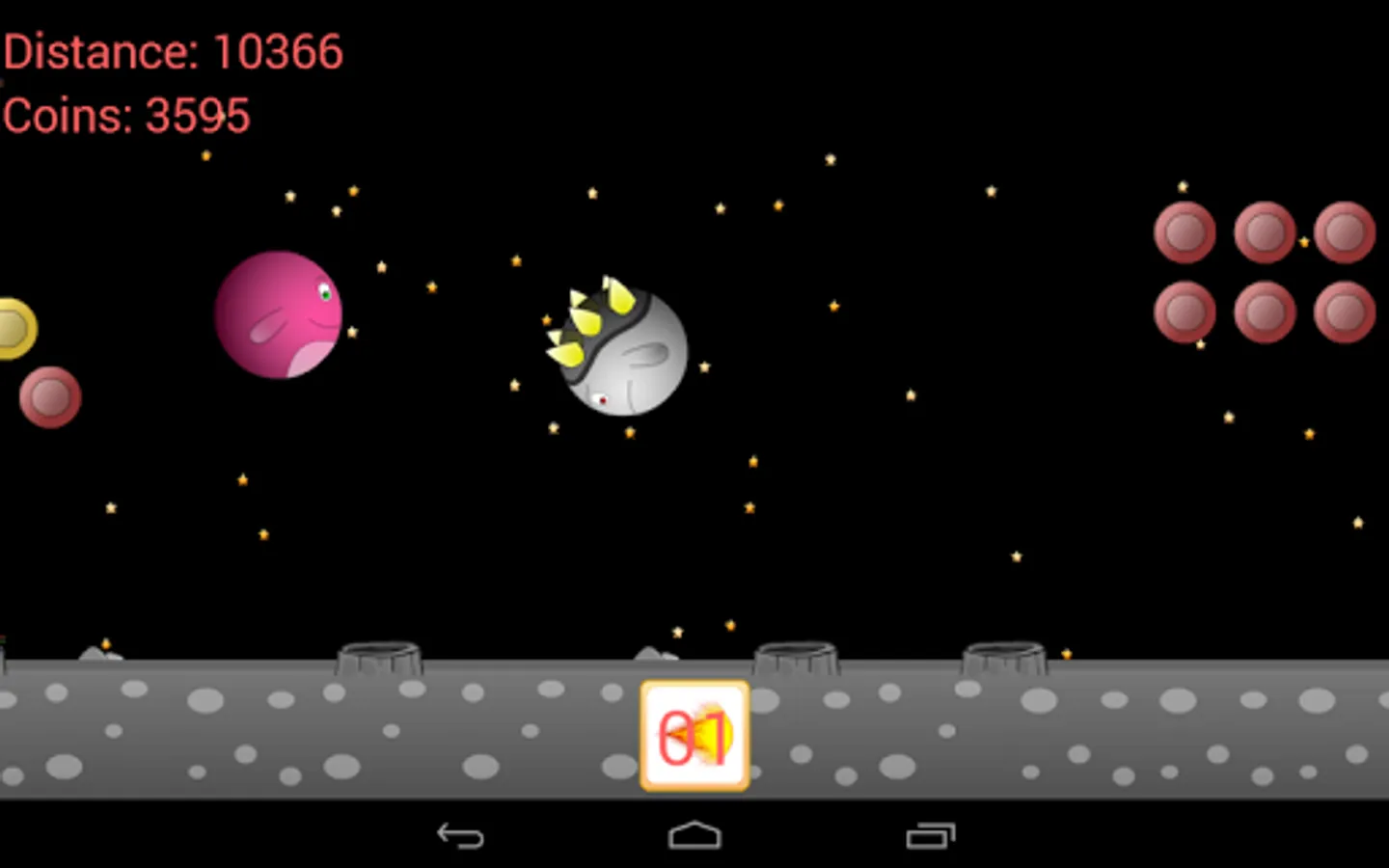 The hero of this game is Koty, a creature, a red ball flying through space.