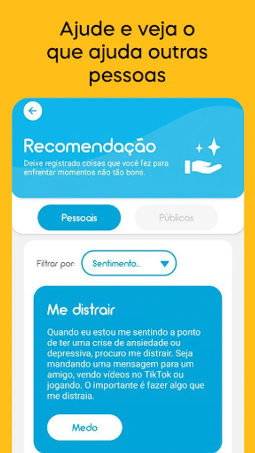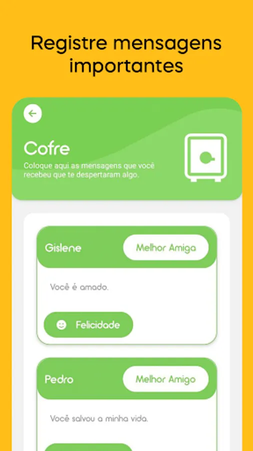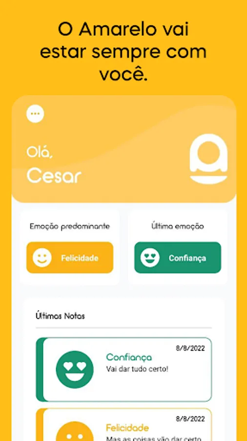Yellow allows you to record your thoughts and feelings as they are happening, so you know precisely how you reacted in a given situation. Through the app's intelligence you can know what you've been feeling lately, in the "Predominant Emotion" record on the home screen.