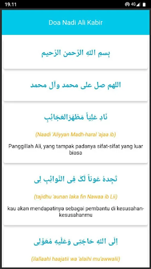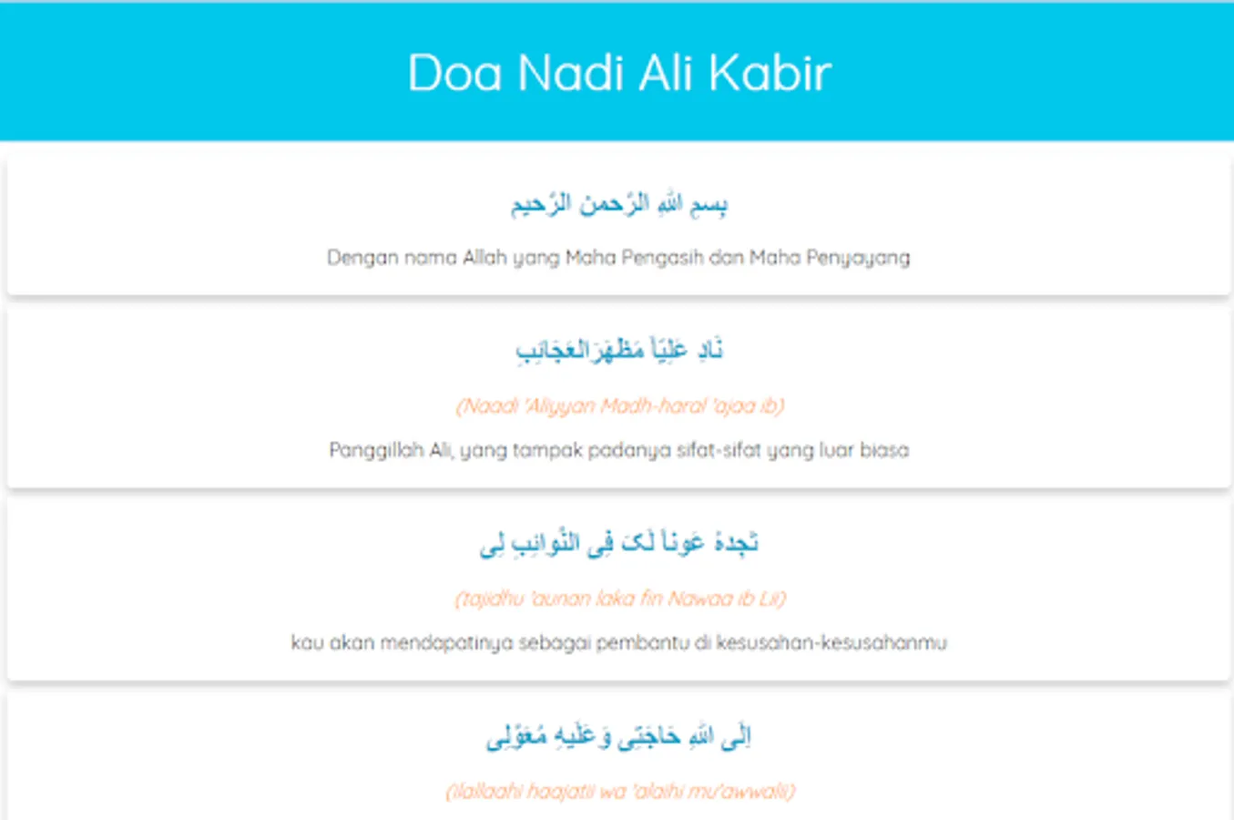 Prayer Nadi Ali Kabir is equipped with Latin texts and Indonesian language translations