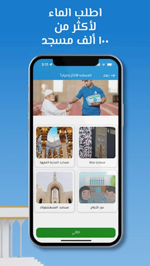تطبيق "ينابيع" يوفر لك خدمة توصيل كراتين وثلاجات الماء إلى المساجد ودور الأيتام من خلال خطوات ميسرة وبسيطة.