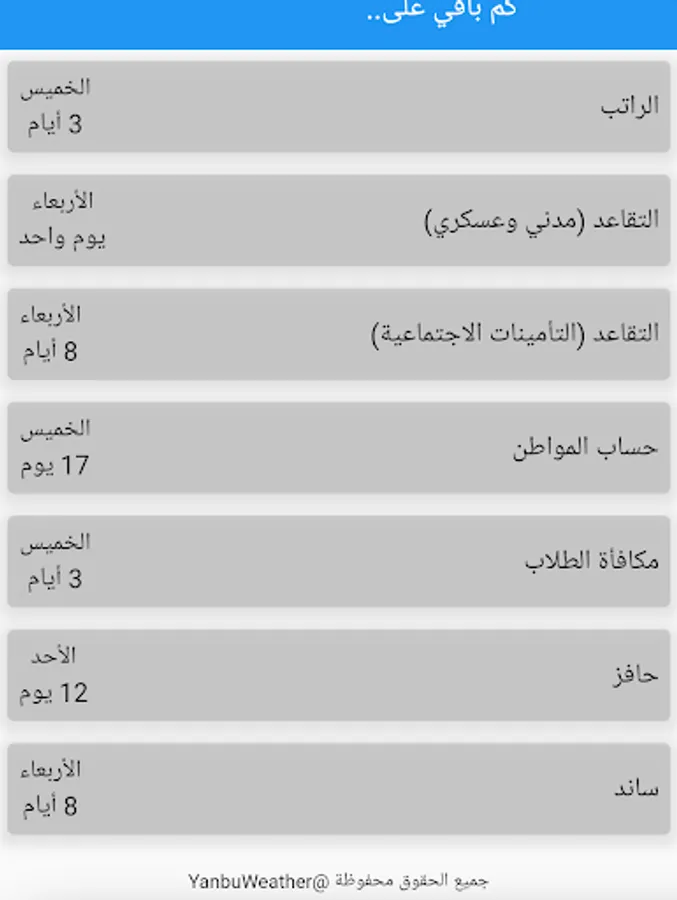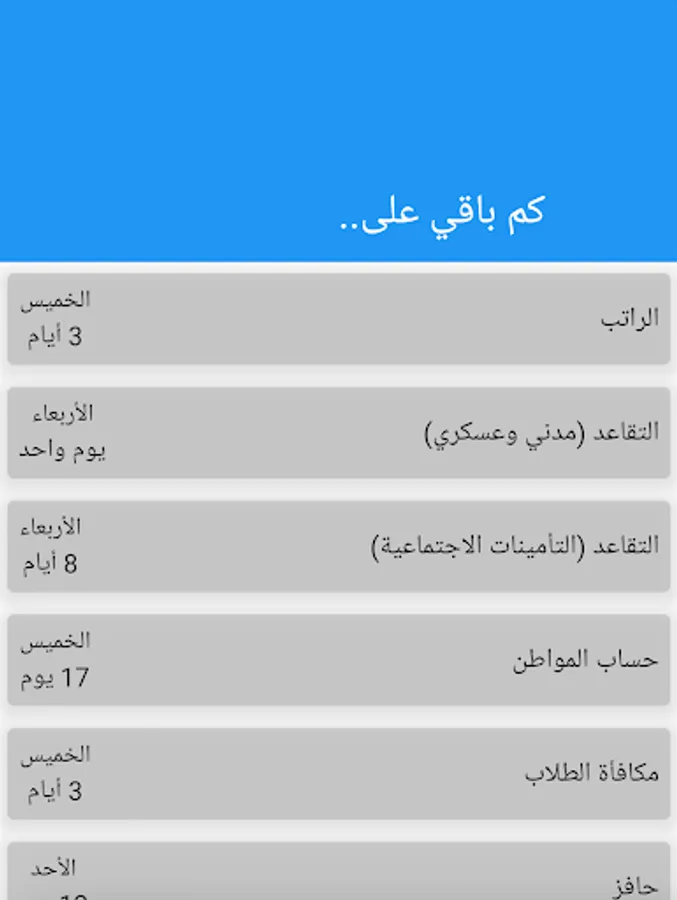 A simple application to display the remaining days of salary disbursement, incentive, citizen's account, retirement, and others.