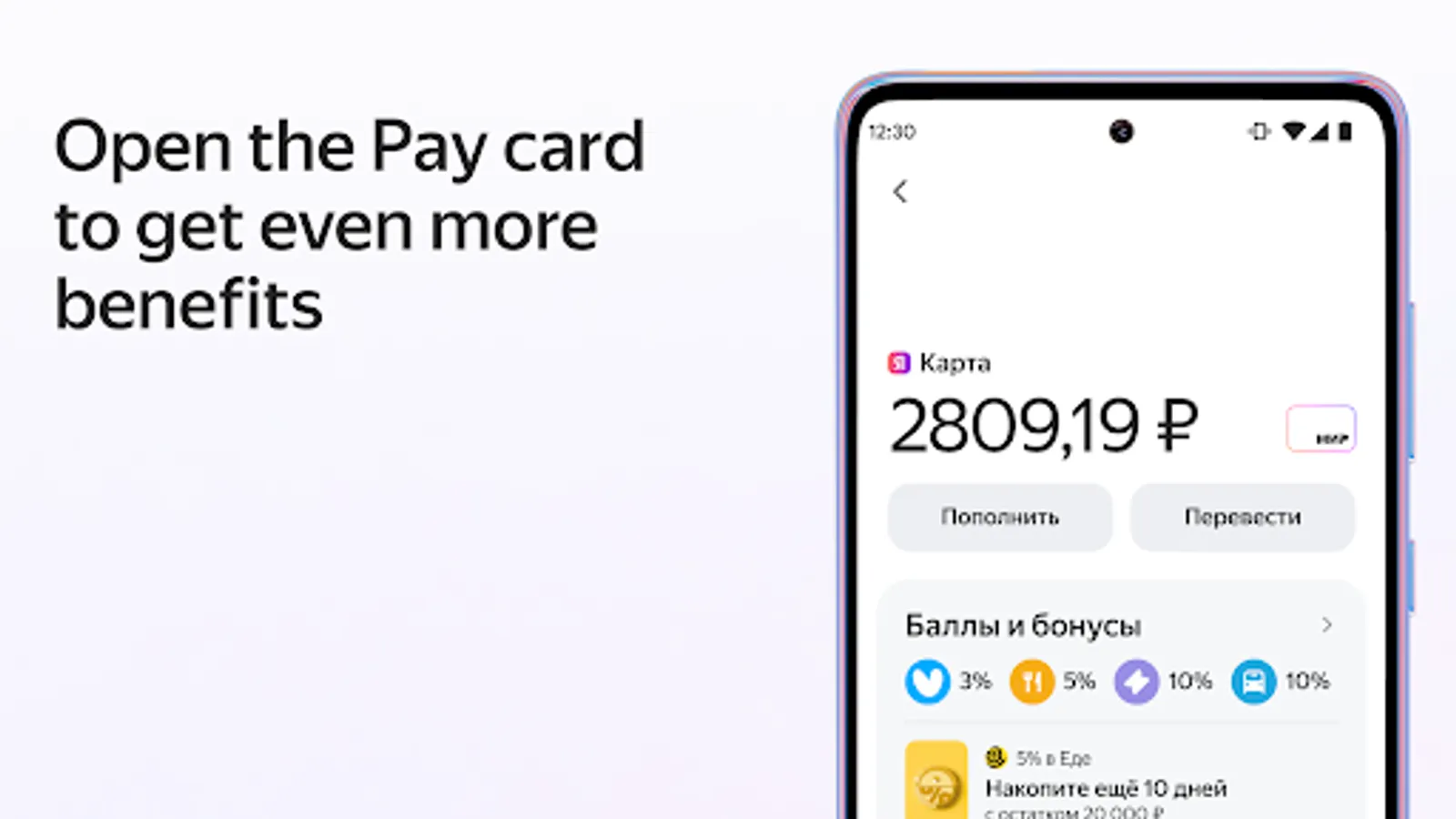To earn even more Plus points, open a free Pay debit card. Choose 3 categories of increased cashback every month and get up to 10% in Yandex services, online stores and offline. And to unlock additional bonuses, keep money in the account.