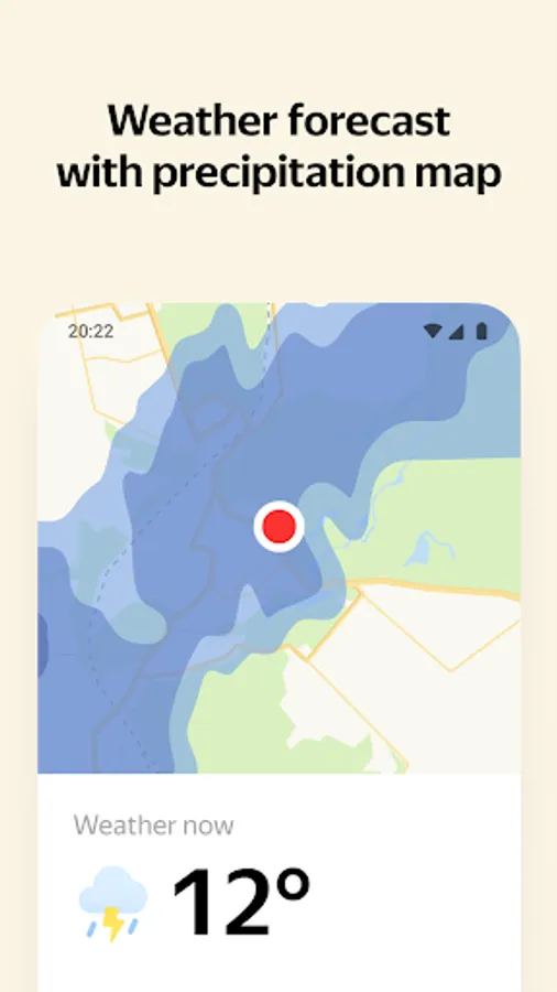 Accurate weather forecast. Detailed hourly forecast for today with a dynamic map that shows precipitation, wind, temperature, and atmospheric pressure. Daily and weekly forecasts with detailed information about wind speed, atmospheric pressure, and humidity. Special modes with useful weather information for fishermen, gardeners, and more.