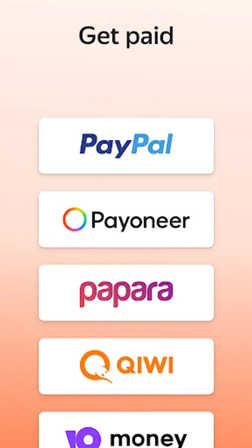 Earnings are calculated in dollars, and you can withdraw funds in your local currency using PayPal, Skrill, or Payoneer. Depending on your region, you may also be able to withdraw money through QIWI. Self-employed citizens of Russia can withdraw money through the fast payment system or YooMoney, and Turkish citizens — via Papara.