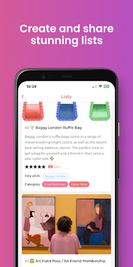 With Listy you can discover and create beautiful lists about restaurants, books, activities, brands and everything in between!