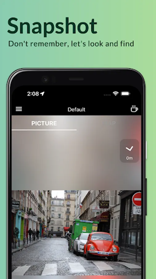 • When the shooting screen is switched, the parked car is taken. At this time, it is photographed together with information such as easy-to-find numbers and symbols.