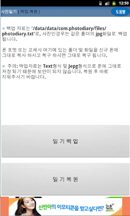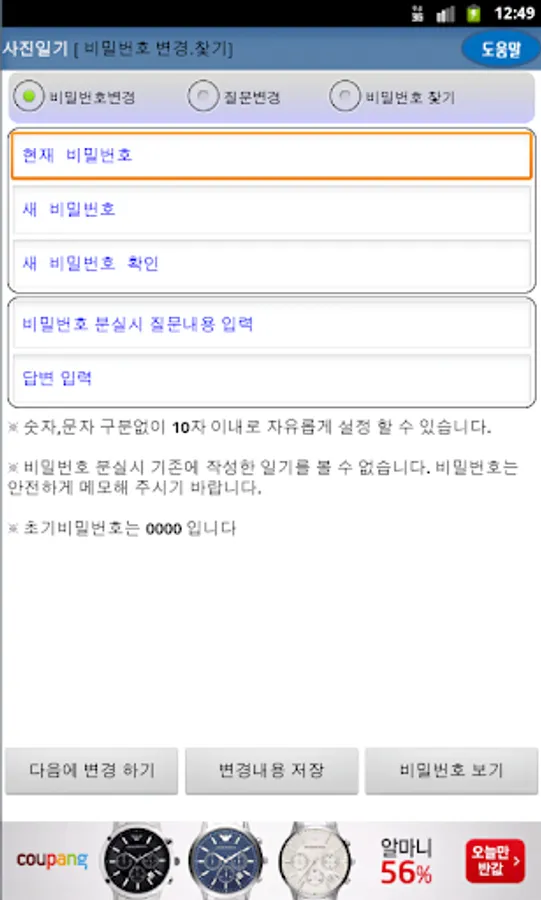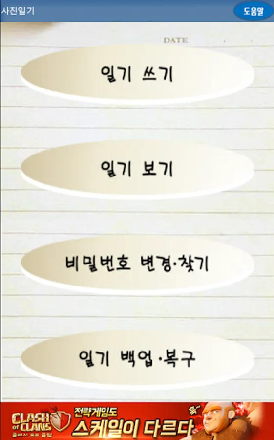 - Home: diary, journal view, change PW, weather backup and recovery, are made.