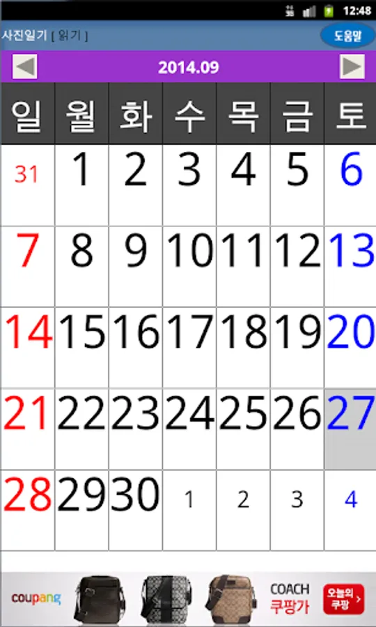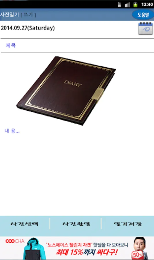 - Diary read: You can touch a date on the calendar that you want to see the weather information and existing written, modified and deleted.