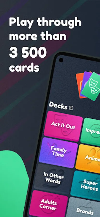 This is the official Charades game where your acting skills, vocabulary proficiency and storytelling abilities will be put to the ultimate test! Play through more than 3500 cards divided into 42 categories and decks today. You can even create your own decks!