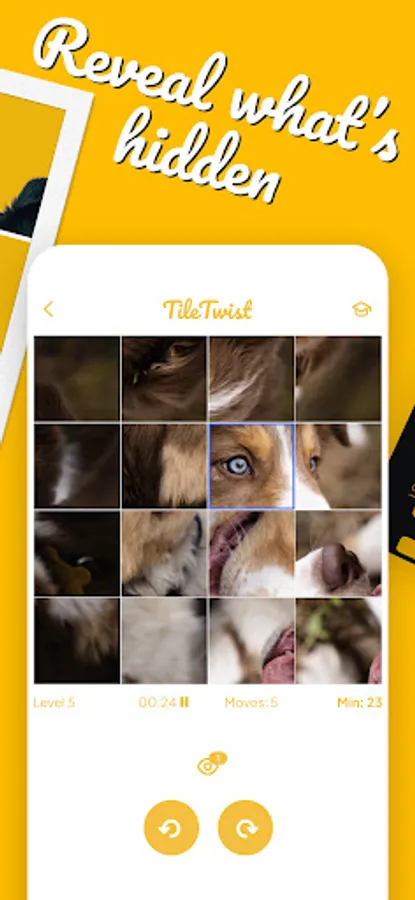 Tile Twist is a relaxing yet challenging puzzle game where you complete levels by rotating all the tiles of a photo to their correct positions.