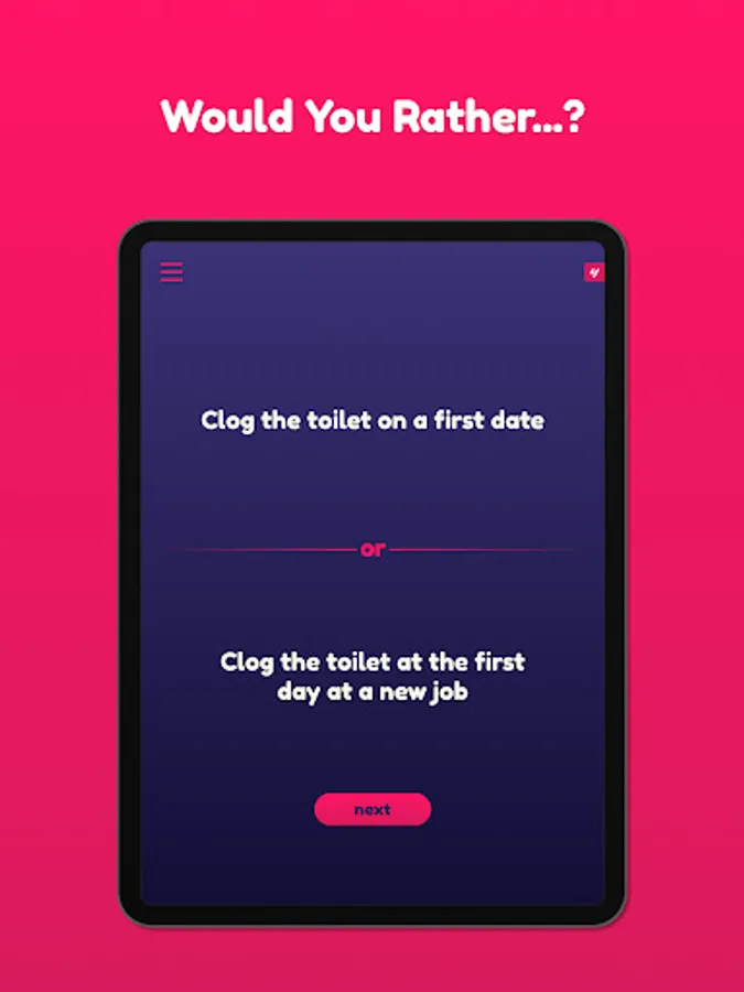 After long and tiresome nights with old and outdated party games, such as truth or dare or with other words, we’d had enough. We realised that the world needed something new. Something more exciting for parties. Sleepless and desperate, we tested various apps, ranging from charades to other quiz and trivia games. One day, we looked back at some old school games and came up with this hilarious party game twist of a classic, for which we instantly knew would be a great new concept for parties! And that is how our version of Would You Rather was born. True story.