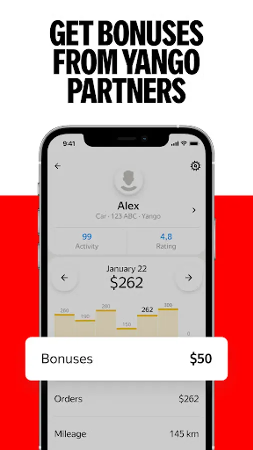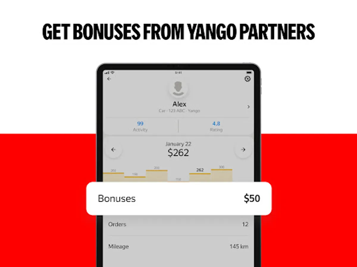 More trips, higher income! Achieve weekly targets by completing a certain amount of trips and get rewarded with good bonuses from Yango Pro partners.
