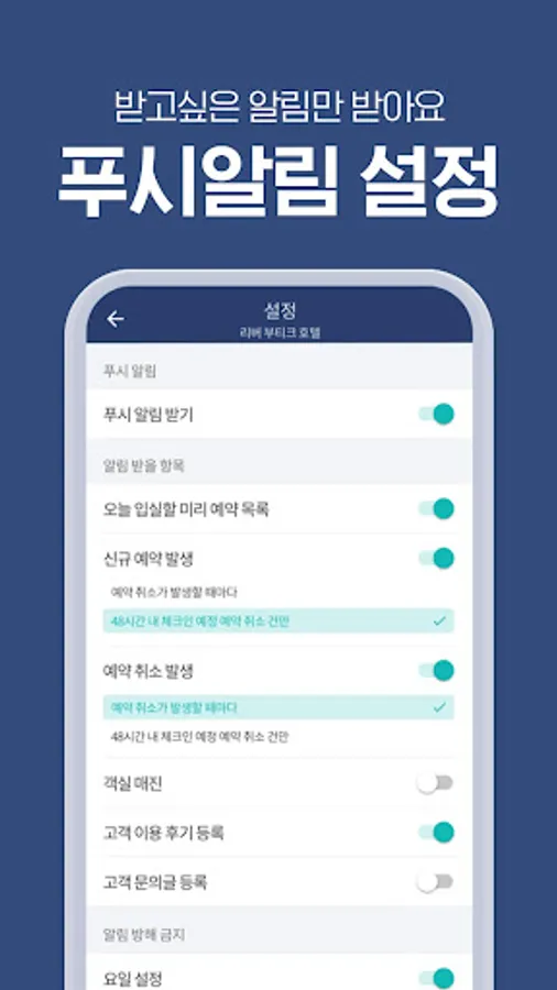 4. Push Notification : You can check various news through push notifications. (Reservation, sold out, cancellation, review notifications)