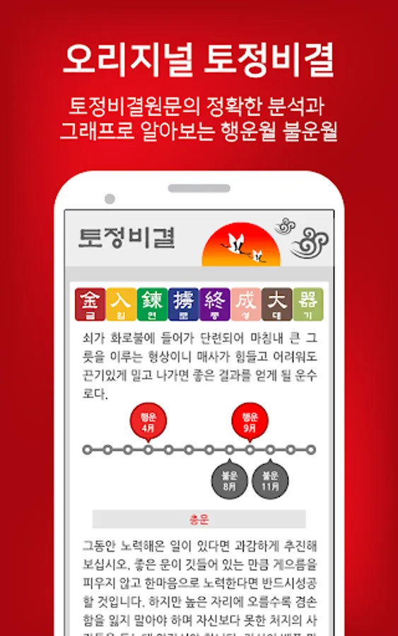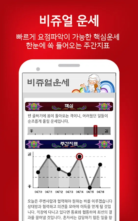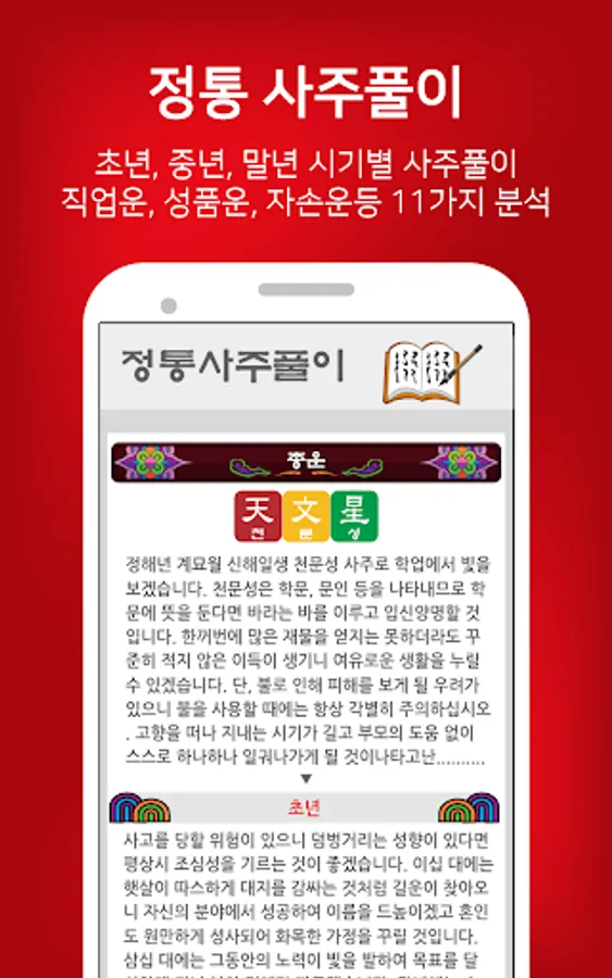 We send fortune telling at the time you want every day with Myeongri Hak-based orthodox horoscope. (On off selectable)