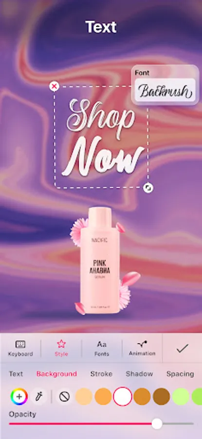 • Edit your text with exclusive features: animations, colorful shadows, various borders and more!