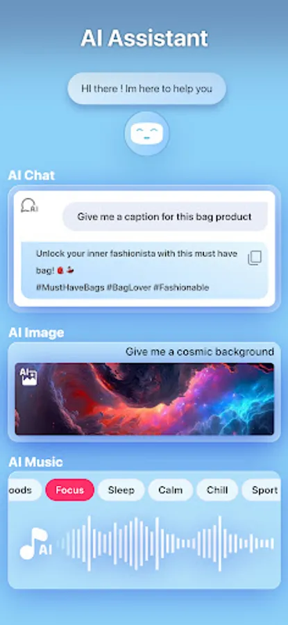 • Choose from various amazing Ai effects: Copies, Ai Vins, Special, Liquis