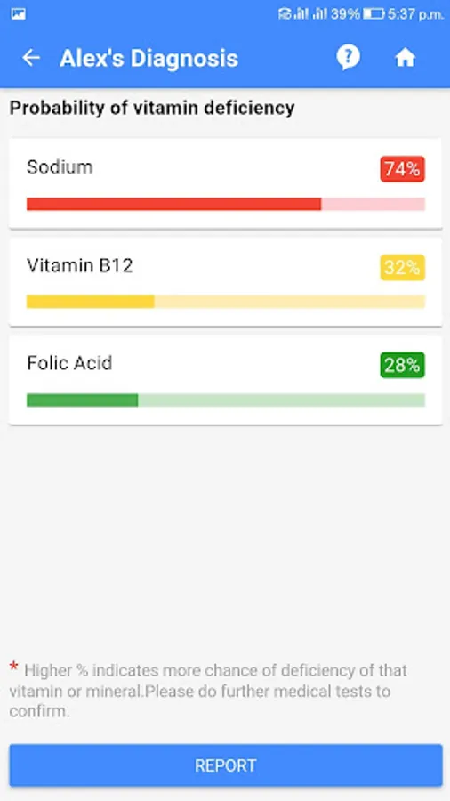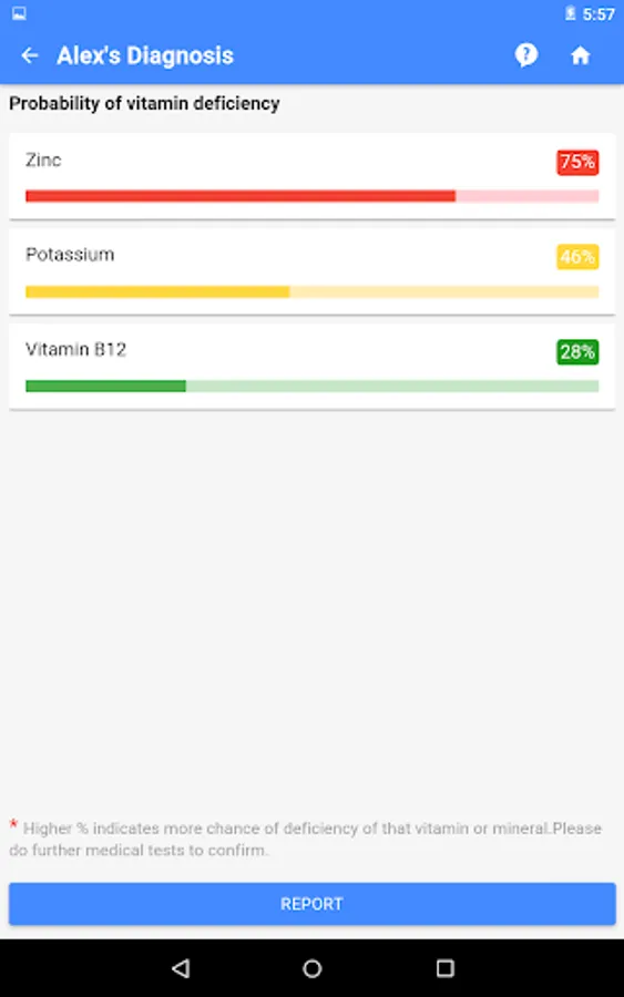 The application is provided for information and educational purposes only. It is not intended to provide any sort of diagnosis or medical advice. You should consult your own personal physician to determine the appropriateness of the information for your specific situation before making any decision regarding treatment or medication related to vitamin deficiencies.