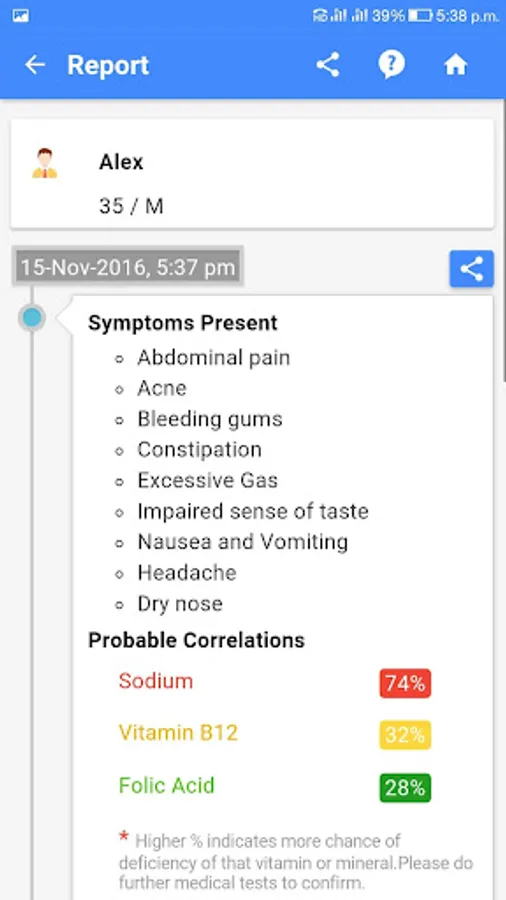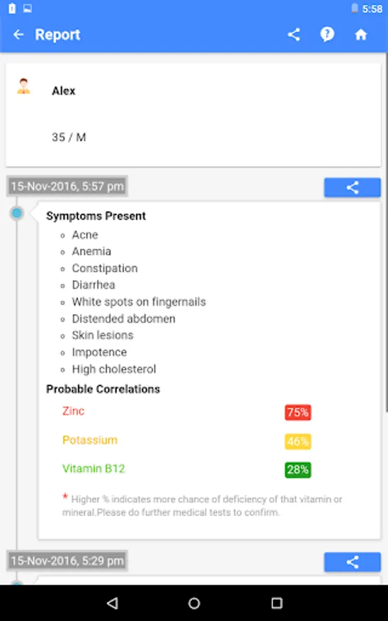 •Ability to handle multiple profiles (e.g. different family members) and reports on prior conclusions. These reports also can be sent over mail or other data sharing apps.