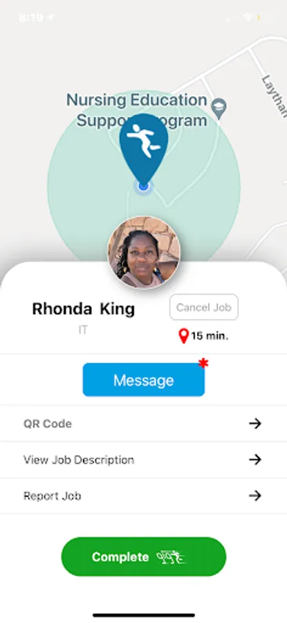 The on-demand request will first be deployed within a 20-mile radius. Anyone matching the requested skill set can respond. The first respondent is now in direct communication with the individual who has requested the service.