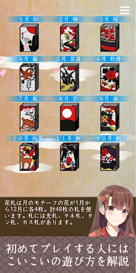 · The rule adopts the classic of Hanafuda, Koi Koi.
