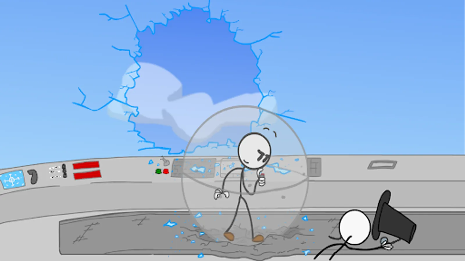 Infiltrating the Airship is one of the popular Henry Stickmin game series. Try not to fail during a deadly mission in the sky! Infiltrating the Airship dares you to make risky decisions in life-or-death situations. You will begin by choosing the earpiece, cannonball, grapple gun, or sticky hand. Each scene presents a new way to die. Have you figured out all the possible endings already? Come on, Take a shot!