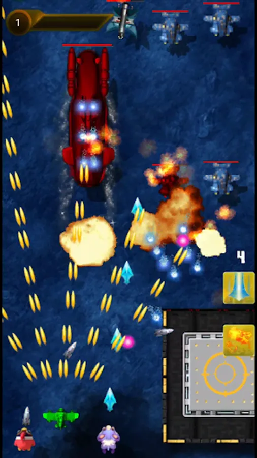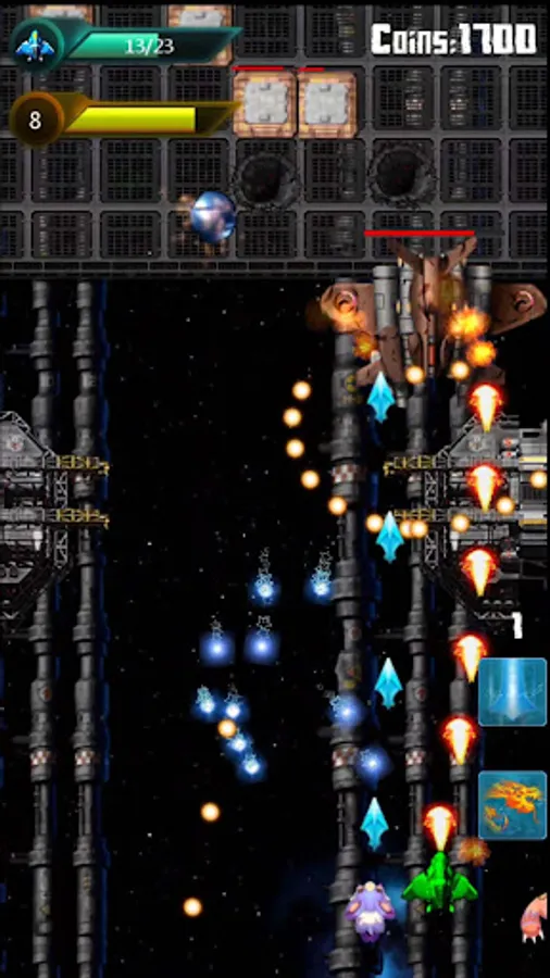 -Pick up the energy blocks dropped after destroying the enemy to upgrade the firepower of the fighter