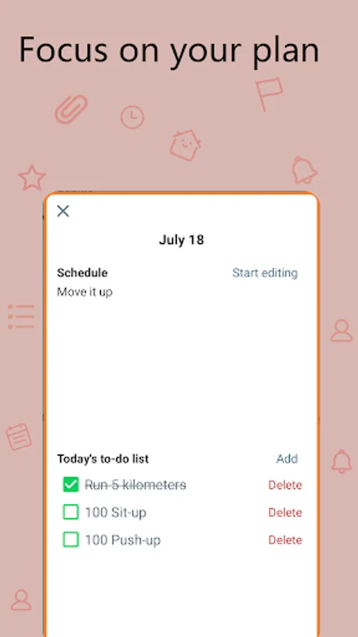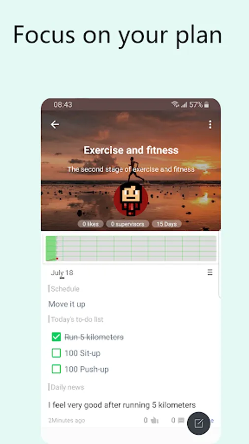 This is software that can help you plan your own plan. You can create a plan with a maximum duration of 60 days and a minimum duration of 3 days. You can also share your plan with others to monitor and monitor your plan. You can also check the daily execution of the plan to see if your execution is strong enough. Within a plan, you can plan what you want to do for each day and invite friends to supervise the execution of your plan. On this, you can also discover what kind of plans everyone is working on and find some like-minded people.