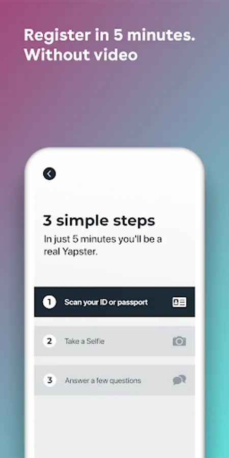 You only see the YAPEAL Verify App once - the first time you download it for the paperless registration. Afterwards you don't have to worry about it anymore, but it will always be with you. Why do you need this additional app? Because it protects your finances, no matter what you do, it works for you in the background. It checks if everything is going well, so you are always on the safe side. You can remove it from your home screen on your mobile but never delete it.