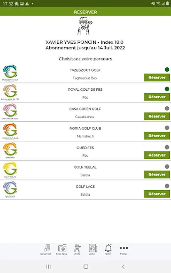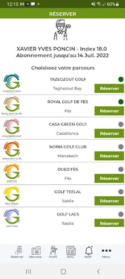 'Madaëf Golfs' is an application that allows members to remotely book a Tee-Time and also allows them to book a tee time on other Madaef Group courses.