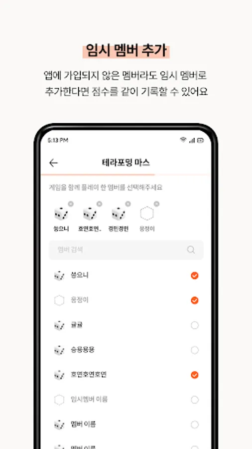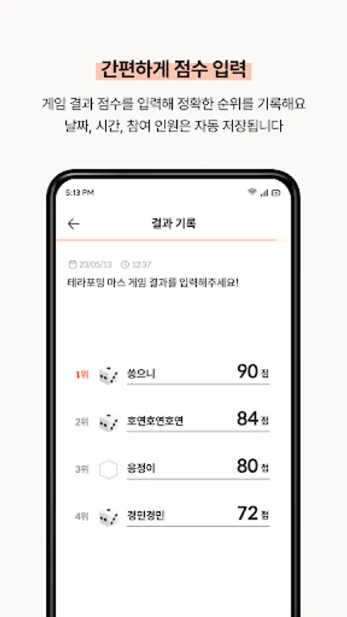 - Record scores and results after playing board games with group members.