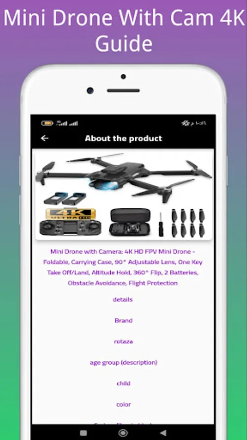 The application Mini Drone With Cam 4K Guide provides you with many information for Mini Drone With Cam 4K Guide