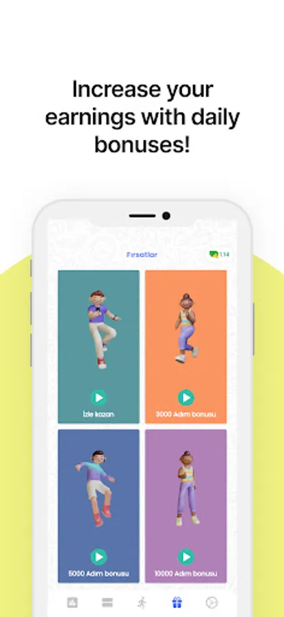 You can convert your counted steps into AdımCoin, buy any product you want from the in-app store, and donate to charities in the application. Moreover, you can increase your earnings by using bonuses! You can increase your coin earnings by using the bonuses! You can also follow your order in the 'Step by' application from the leaderboard.