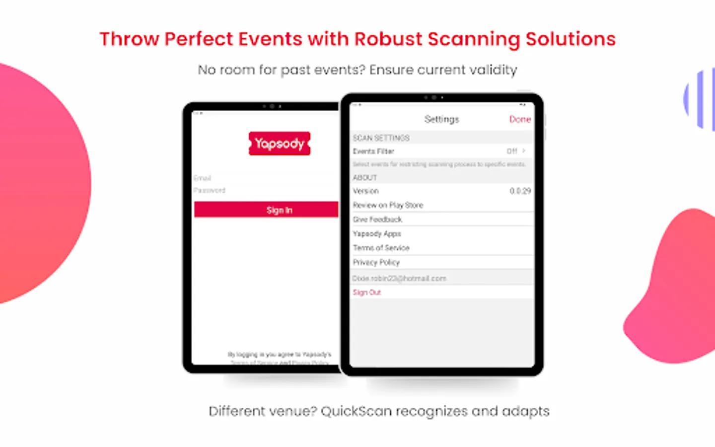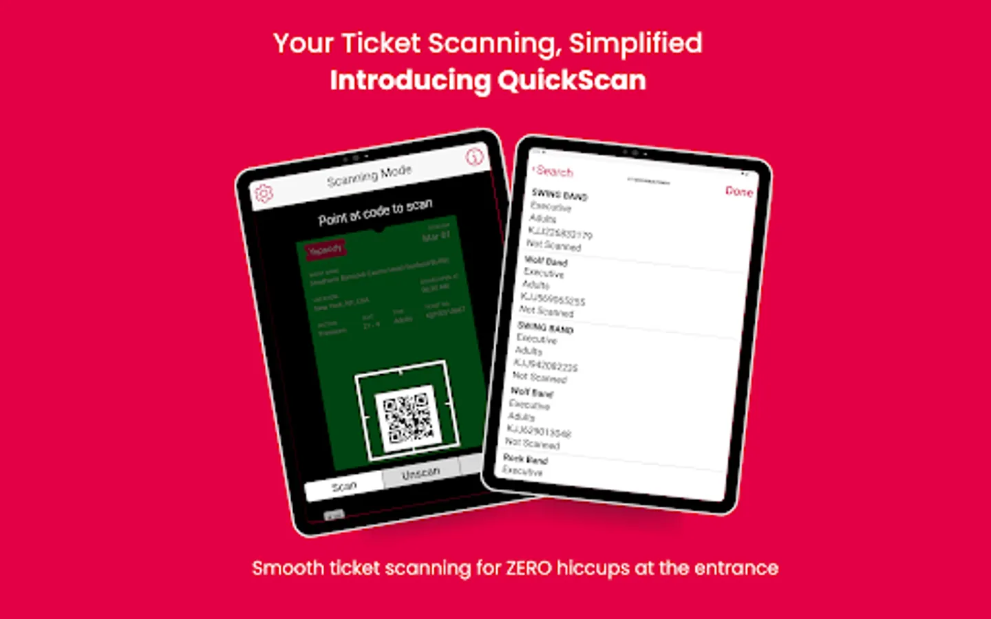Introducing QuickScan by Yapsody, your ultimate ticket scan app for efficient event entry management with features like robust scanning, recognition of different venues, detection of 'pay later' and refunded tickets, and prevention of early scanning. The mobile app showcases all your live events, empowering you to filter and select specific events for ticket scanning.